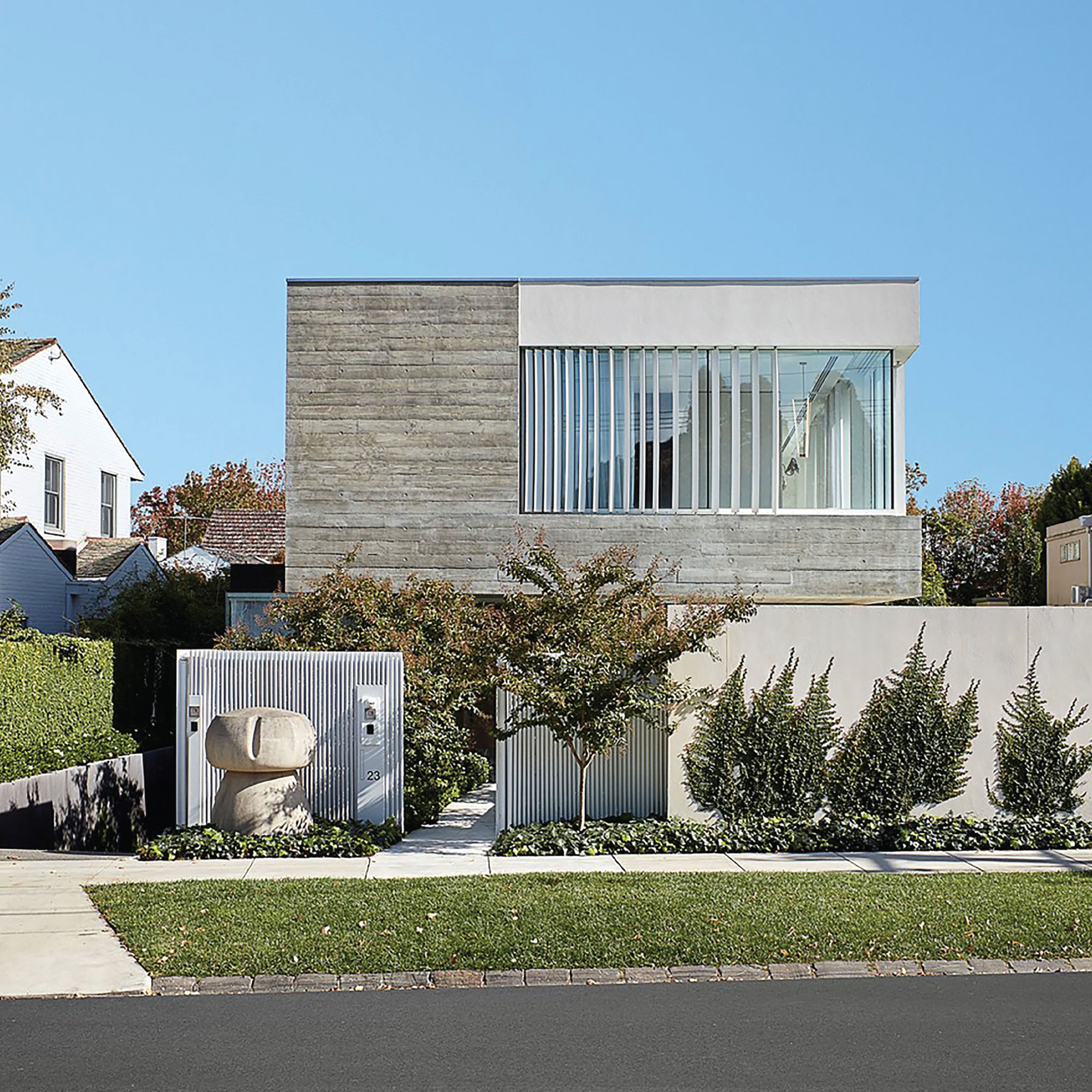 The street-facing aspect of the building has been meticulously crafted to command a prominent street presence. It showcases a blend of tactile materials, including elongated brickwork, angular concrete, and linear cladding.